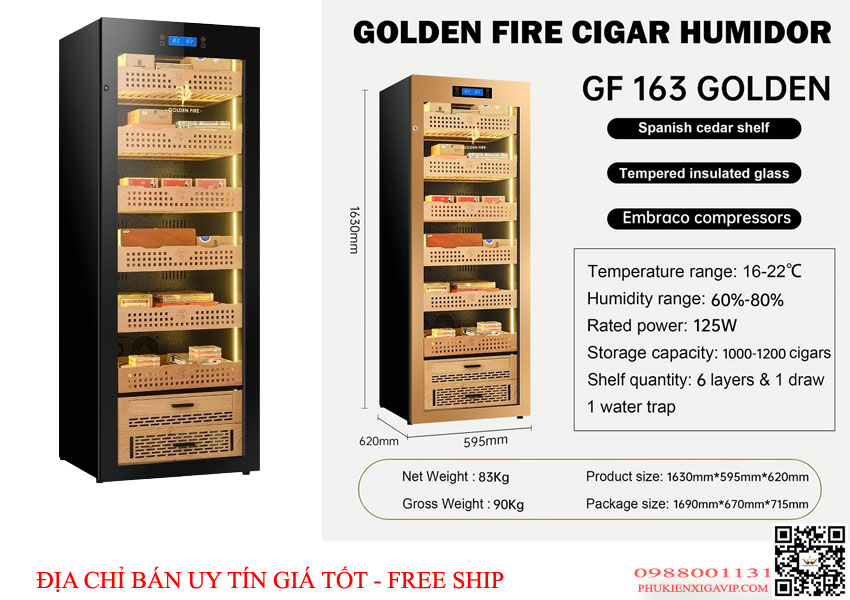 1. Tủ điện bảo quản xì gà tự động Golden Fire GF163